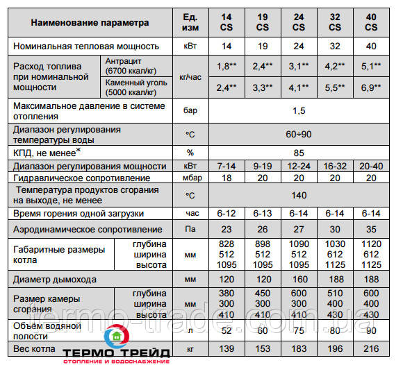 Технічні характеристики котлів Котелфф CS