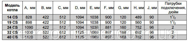 Геометричні розміри котлів Котлоф CS